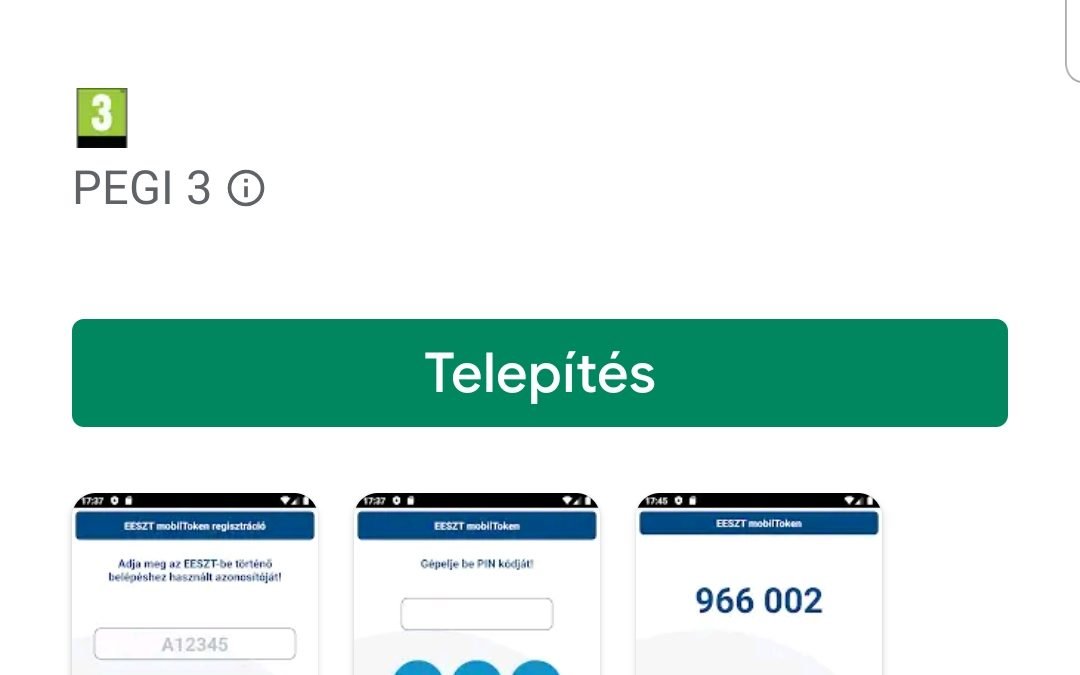 Fontos tudnunk, hogy ehhez a mobiltelefonra le kell tölteni a Play Áruházból EESZT mobilToken néven az alkalmazást és a felhasználói kézikönyv szerint kell telepíteni. A telepítéshez szükséges leírást az ÁEEK már biztosította és a MedMaxban is megtalálható az Alapnézeten, a Távsegítség/EESZT csatlakozási Segédletben és innen is elérhető.
