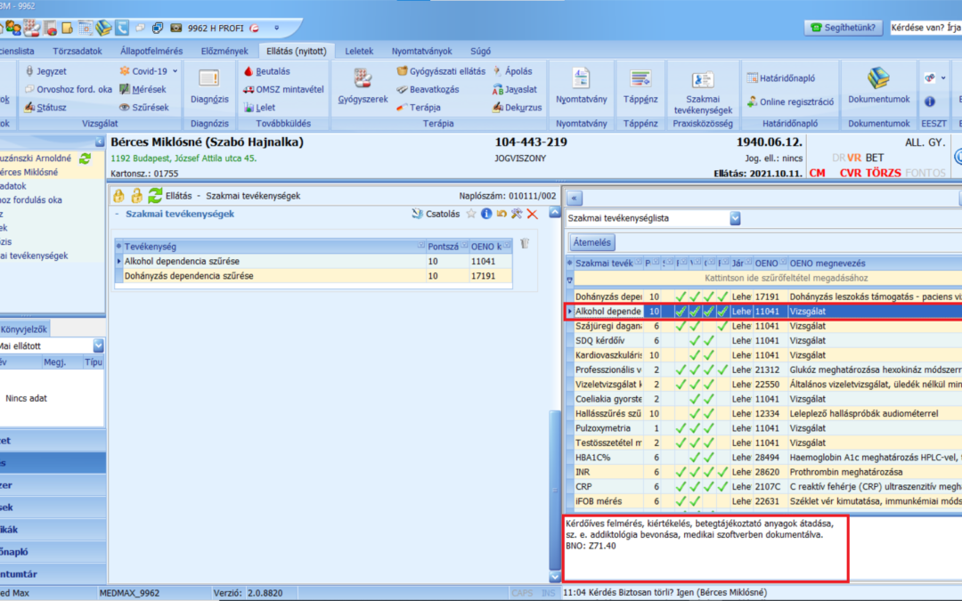 Dolgozunk azon, hogy amennyiben egyértelműen megfeleltethető az elvégzett tevékenység, a MedMax automatikusan beemelje a hozzá tartozó szakmai tevékenység kódját az ellátási lapra. Hamarosan ezek a kényelmi funkciók is elérhetőek lesznek a programban.